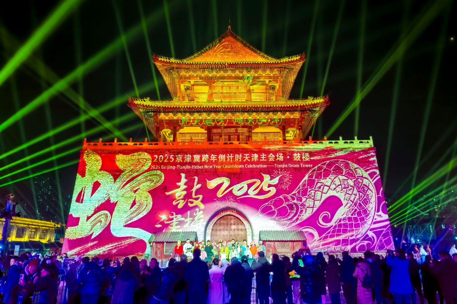 2024年12月31日晚,京津冀三地首次联动举办跨年倒计时活动。图为天津南开区鼓楼广场会场。(图/中新社)