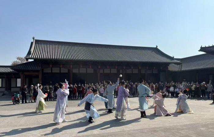 “我们选取了部分易于大众学习的舞蹈动作,邀请相关领域达人前往德寿宫与舞蹈演员现场斗舞,还组织广场舞团队、舞蹈工作室及特定职业人群等在德寿宫外模仿跳宋舞,创意打造‘全民斗宋舞’的热烈氛围。”德寿宫文创团队负责人黄晓菲介绍。