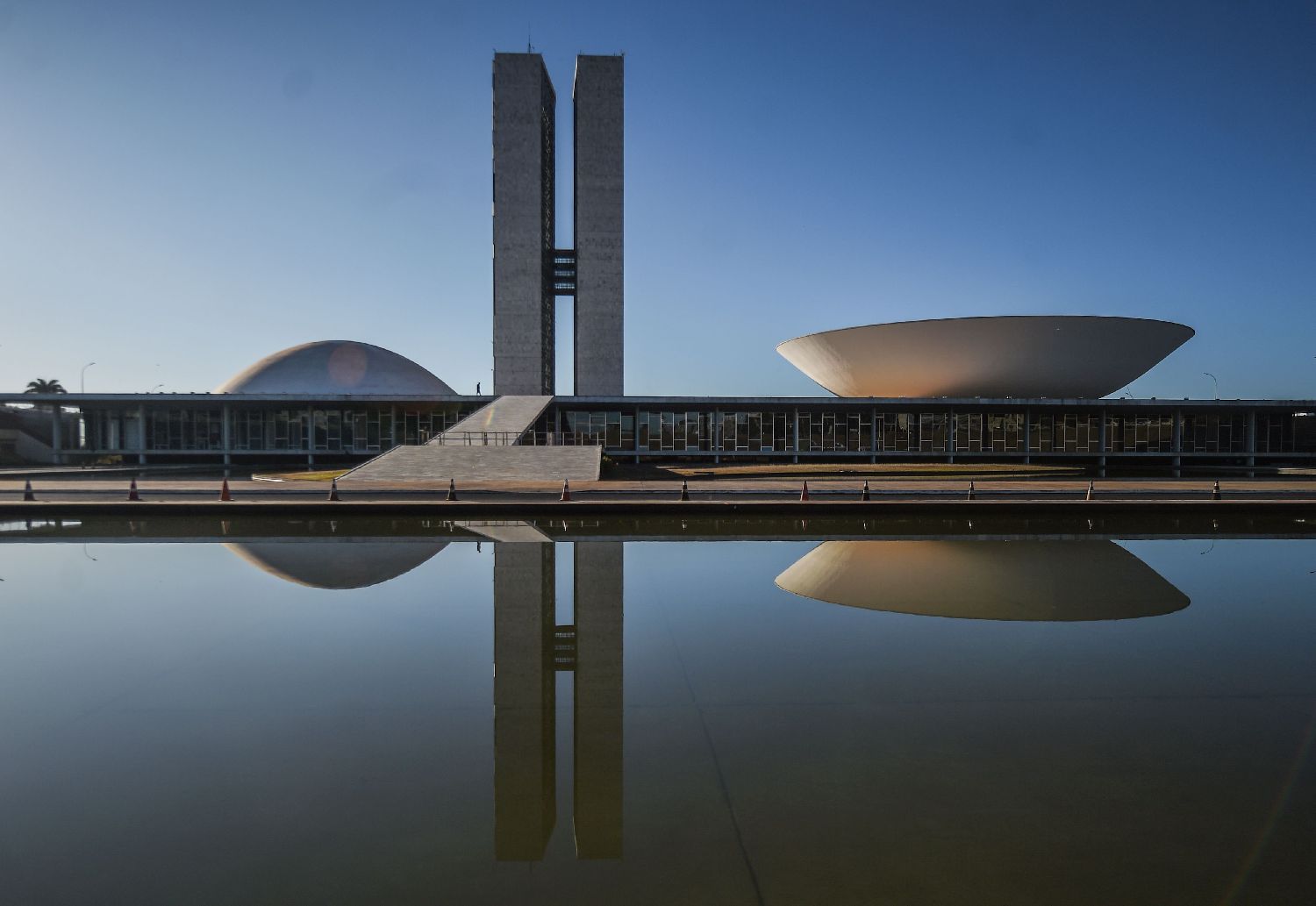 图为在巴西首都巴西利亚城市中轴线上拍摄的巴西国会大厦。(图/新华社)