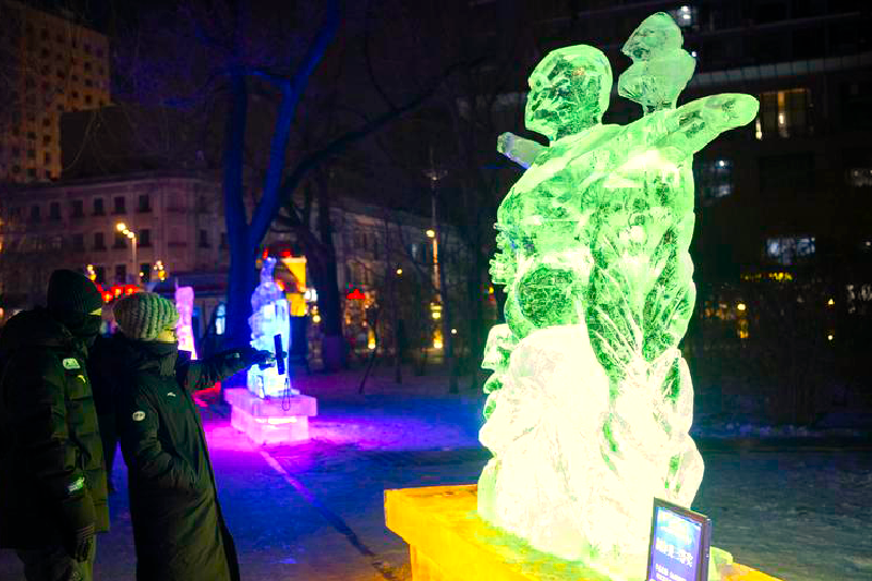 图为1月2日,第36届哈尔滨国际冰雕比赛在哈尔滨冰雪大世界拉开序幕,来自厄瓜多尔、法国、韩国、中国、俄罗斯、西班牙、美国等12个国家的30支代表队的60位选手同台比拼。(哈尔滨《黑龙江日报》)