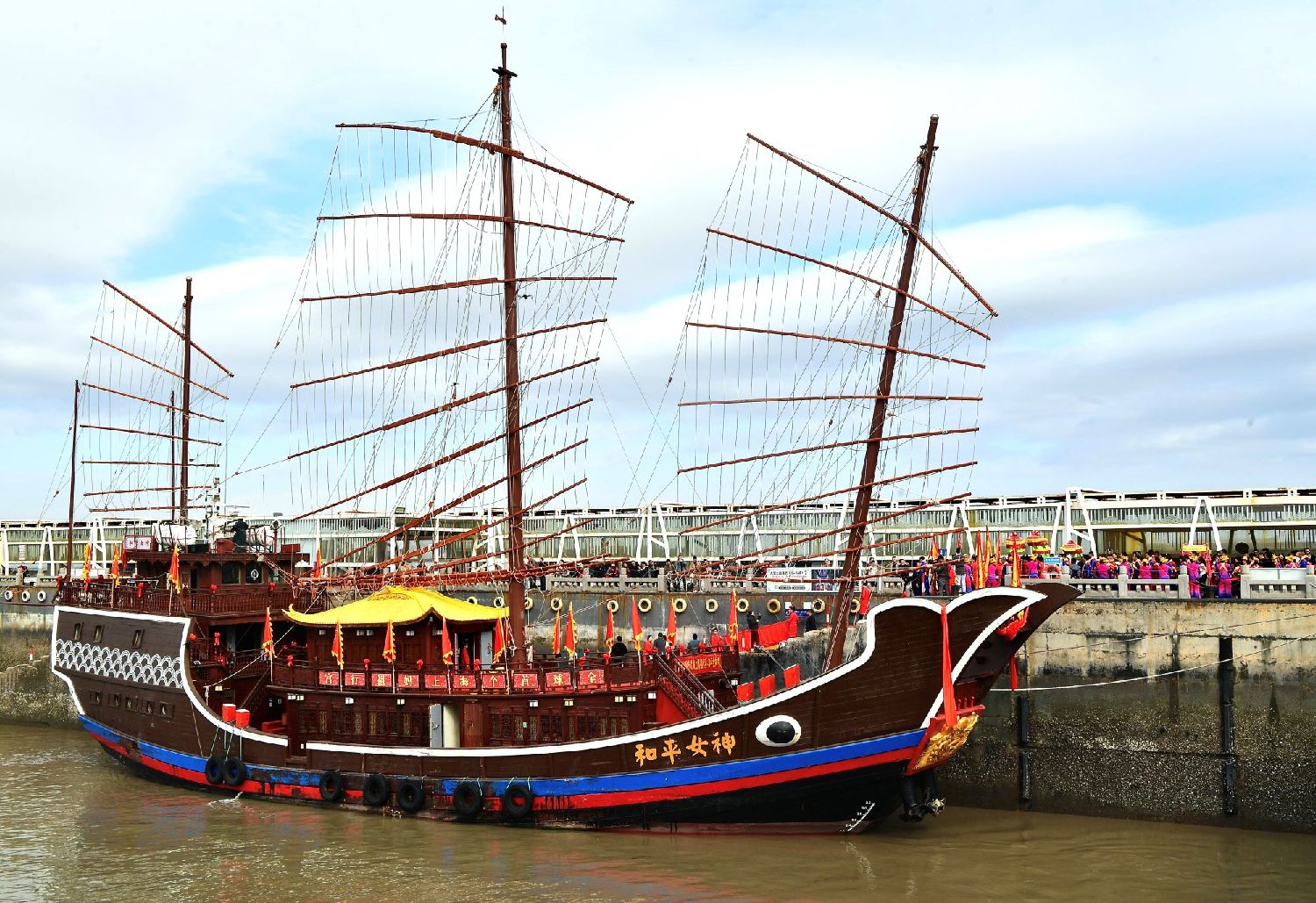 “重走海丝路之遇见妈祖”活动12月5日在福建湄洲岛启动,全球首个“海上妈祖行宫”于停靠在福建湄洲岛的“和平女神”号仿古船上揭牌,推动妈祖文化“走出去”。