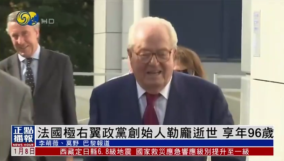 法国极右翼政党国民阵线创始人让-玛丽·勒庞7日去世,终年96岁。(图/香港凤凰网视频截图)