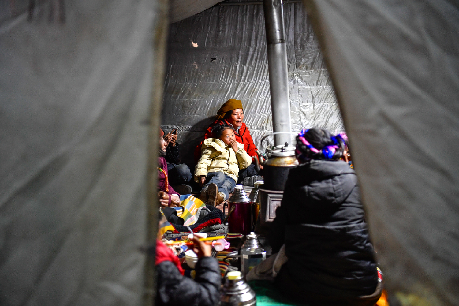 图为1月8日,西藏日喀则,定日县茶江村,受灾民众得到妥善转移安置。(CFP)