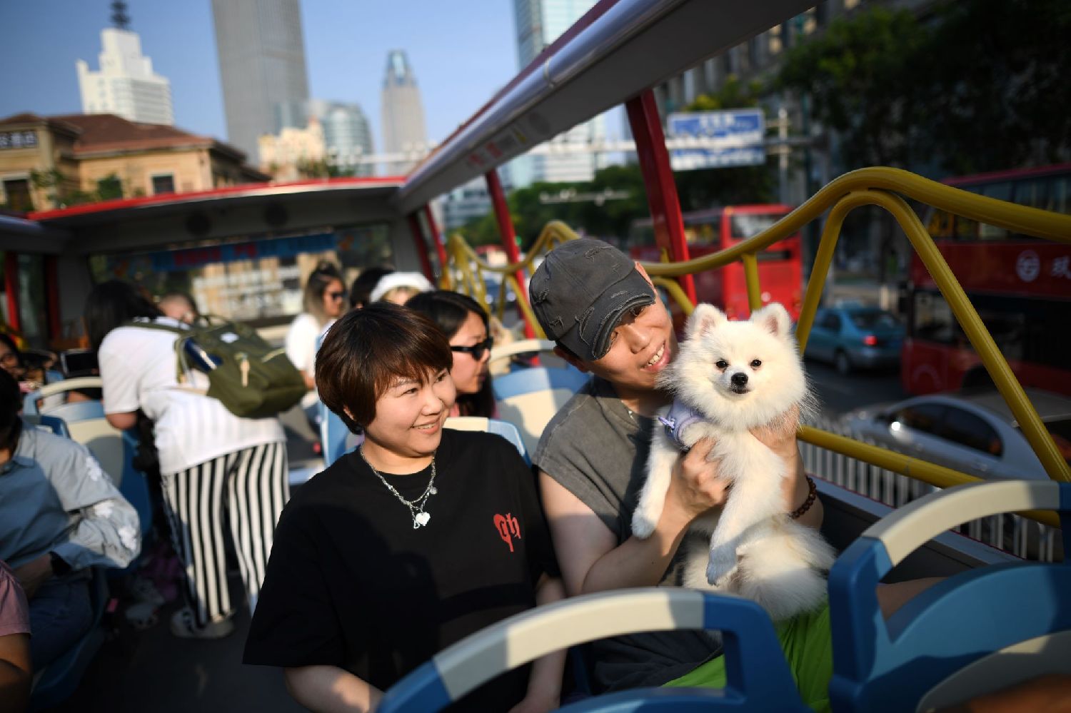 2024年6月8日,在天津,宠物主人携爱宠登上双层观光巴士,观赏津城美景,享受假日美好时光。(图/中新社)
