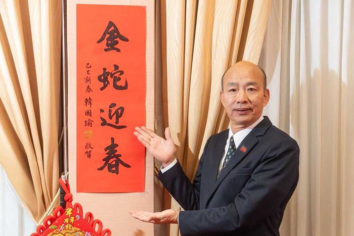 韩国瑜今年特别准备的“金蛇迎春”春联被一抢而空。(图/韩国瑜脸书)