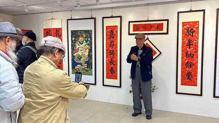 1月18日,“2025‘年’在一起 两岸春联年画漫画展”在台北江山如此多娇艺术馆开幕。(图/中新社)