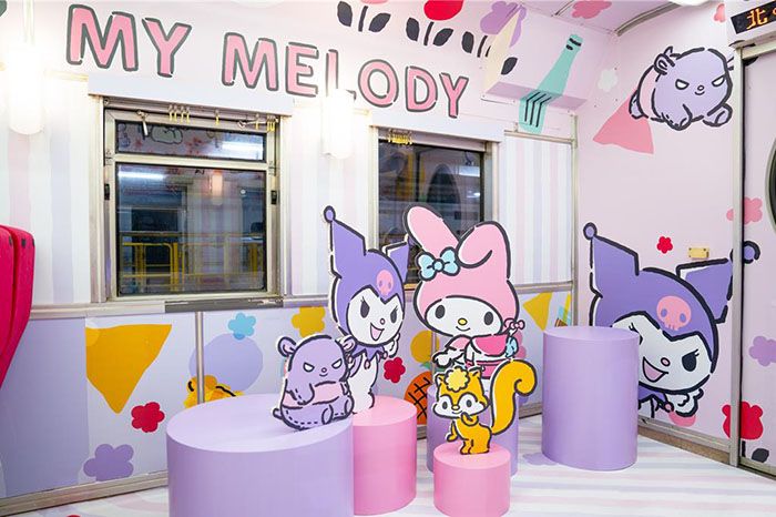 图为车厢內美乐蒂与酷洛米的可爱图案。(图/台北中时新闻网)