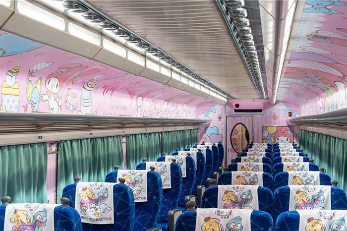 “环岛之星萌旅号”列车以美乐蒂等三丽鸥明星內装融入台湾景点元素。(图/台北中时新闻网)
