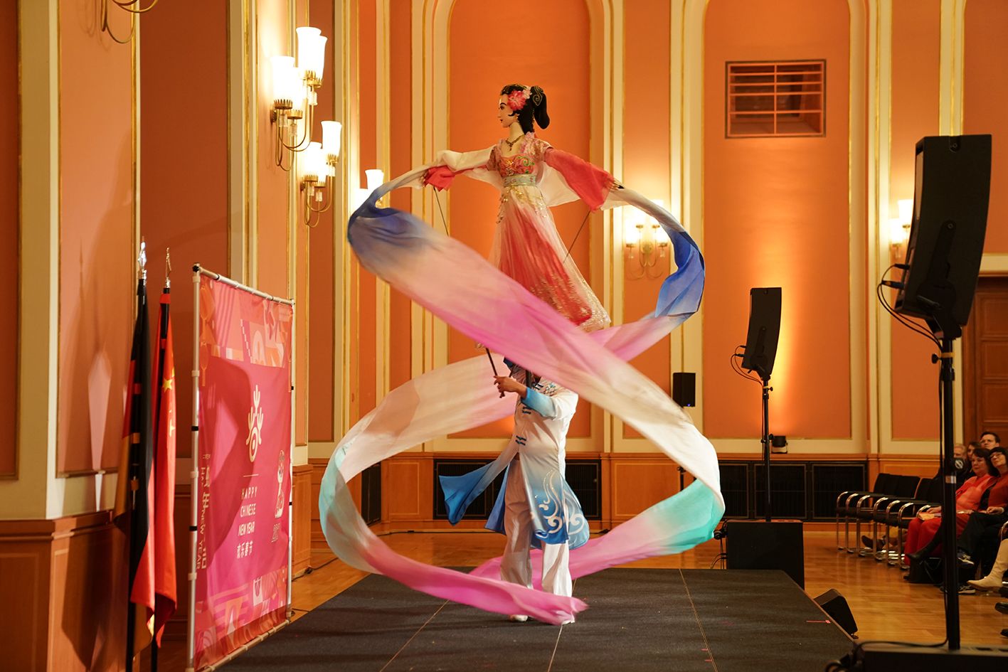 1月17日,2025蛇年“欢乐春节”新春庆典晚会暨春节招待会在柏林红色市政厅举行。来自中国四川省的艺术家们带来一场精彩演出。(中新社)