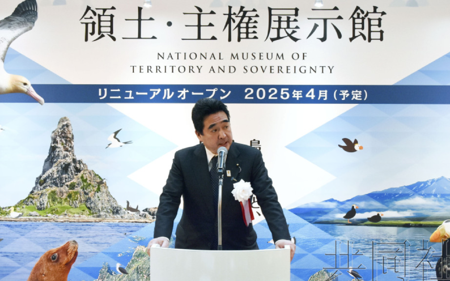 关于就北方领土、竹岛(韩国称独岛)和尖阁诸岛(中国称钓鱼岛)介绍日本立场的“领土主权展示馆”(东京都千代田区),其巡回展览20日在东京丸之内的商业设施开始举办。领土问题担当相坂井学出席仪式并介绍巡展目的说:“保护领土是日本面临的非常重要的问题。希望加强国内外宣传。”