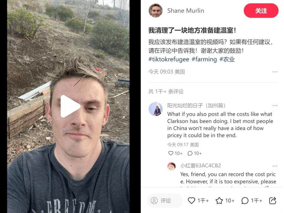 新发布的视频显示,一位美国网民已经清理了一块地方准备建温室,展现了非常高的行动力。(图/小红书网页截图)