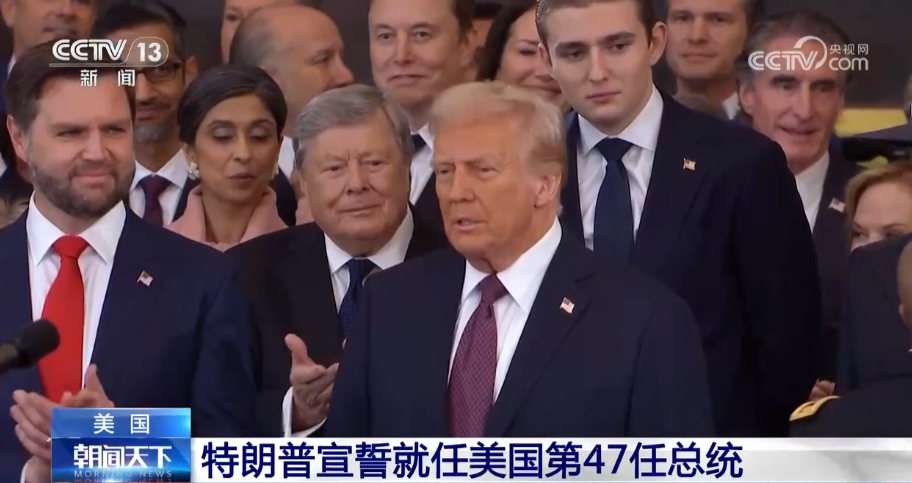 美国东部时间20日中午,特朗普在国会大厦圆形大厅宣誓就任美国第47任总统。(图/中国央视新闻视频截图)
