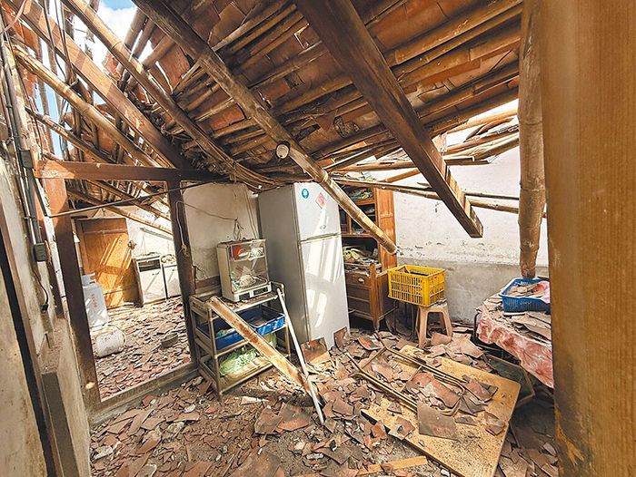 21日发生的嘉义县6.4级地震造成台南市楠西区鹿陶洋江家聚落31户房屋受损。(图/台北中时新闻网)