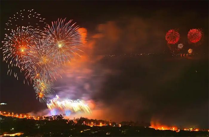 当地时间1月29日晚8时,2025年海峡两岸焰火晚会将在厦门、金门两地同时举行。图为去年厦门与金门同放焰火共庆新春。(图/人民网)