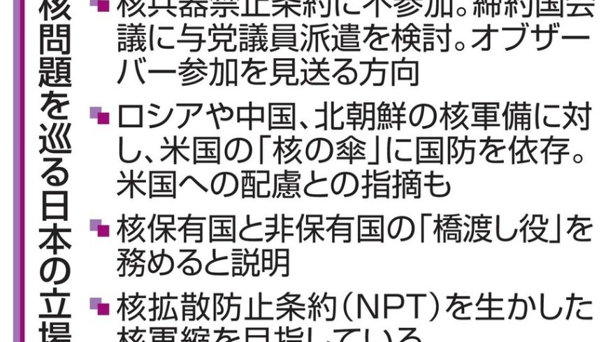 禁止核武器条约,日本政府计划派遣执政党议员参加3月缔约国会议