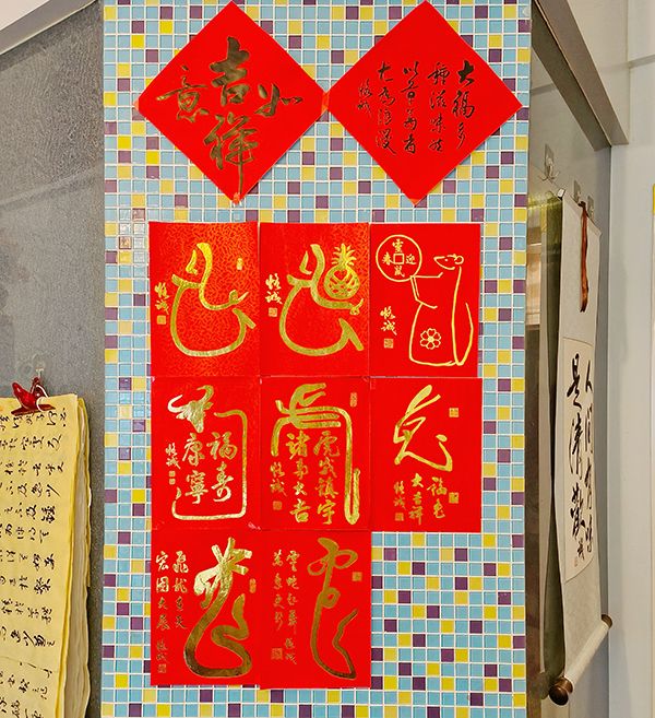 当然,胡祎崟也会给自己留一张老师书写的春联贴在家里。“原本是贴在门框上,今年已经贴不下了,准备换个位置。”将七年来的春联挪至一面新墙上,她贴上了第八张春联,开始期待若干年后再为满墙春联“搬家”的一天。