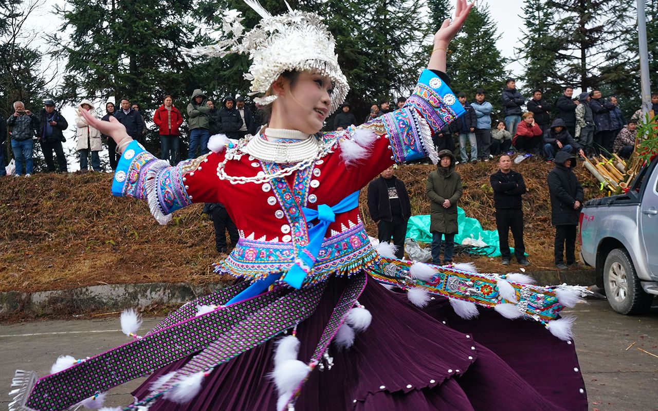 图为2月2日,广西融水苗族自治县拱洞乡培基苗寨举行芦笙节活动,来自周边村寨的苗、瑶、侗等各民族群众欢聚一堂,吹笙踩堂、跳苗舞、赛芦笙,喜迎“立春”。(CFP)