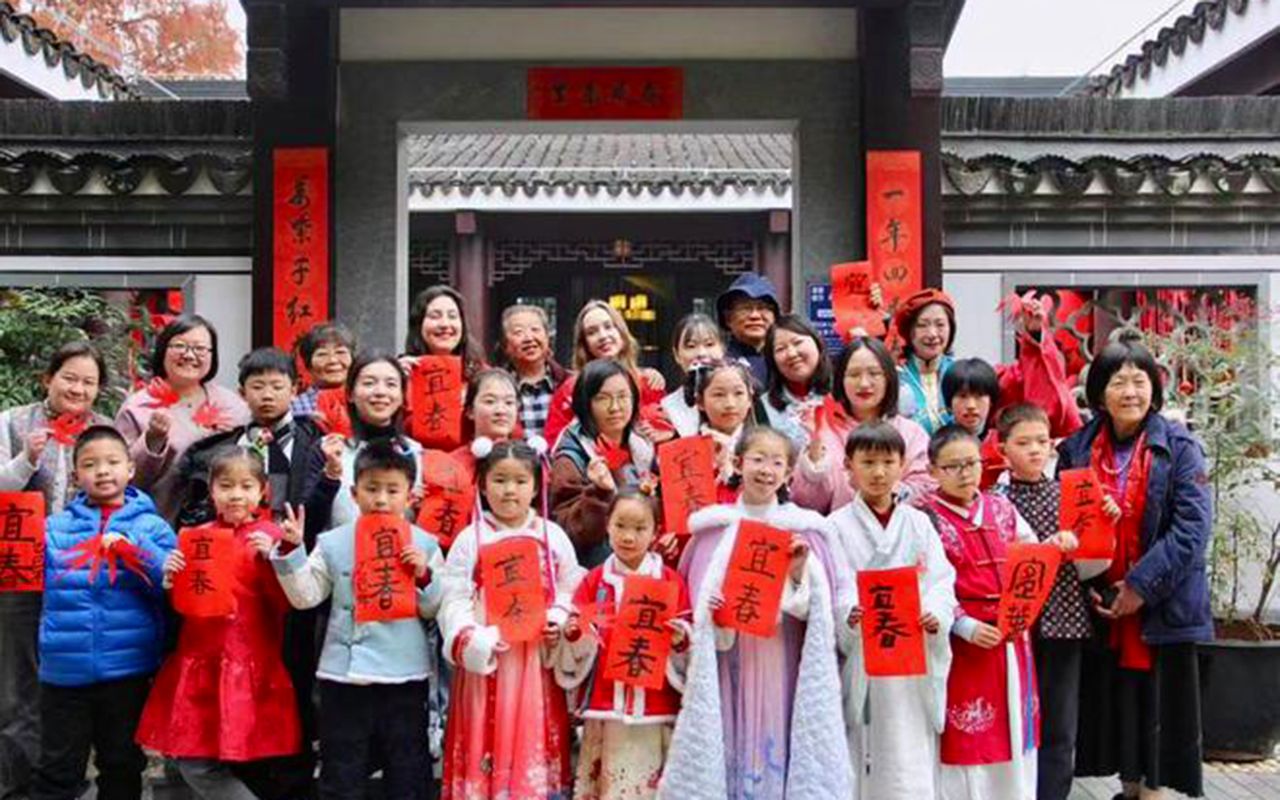 图为2月2日,中外游客来到位于上海市徐汇区华泾镇的黄道婆纪念公园,在“海上最春早”立春游园活动中共同迎接春天的到来。(上海东方网)