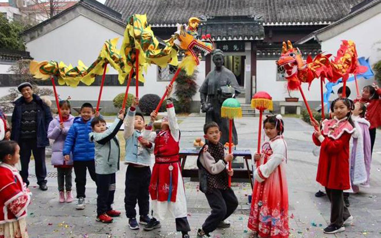 图为2月2日,上海徐汇,小朋友们在“海上最春早”乙巳立春游园会活动现场舞龙。(上海东方网)