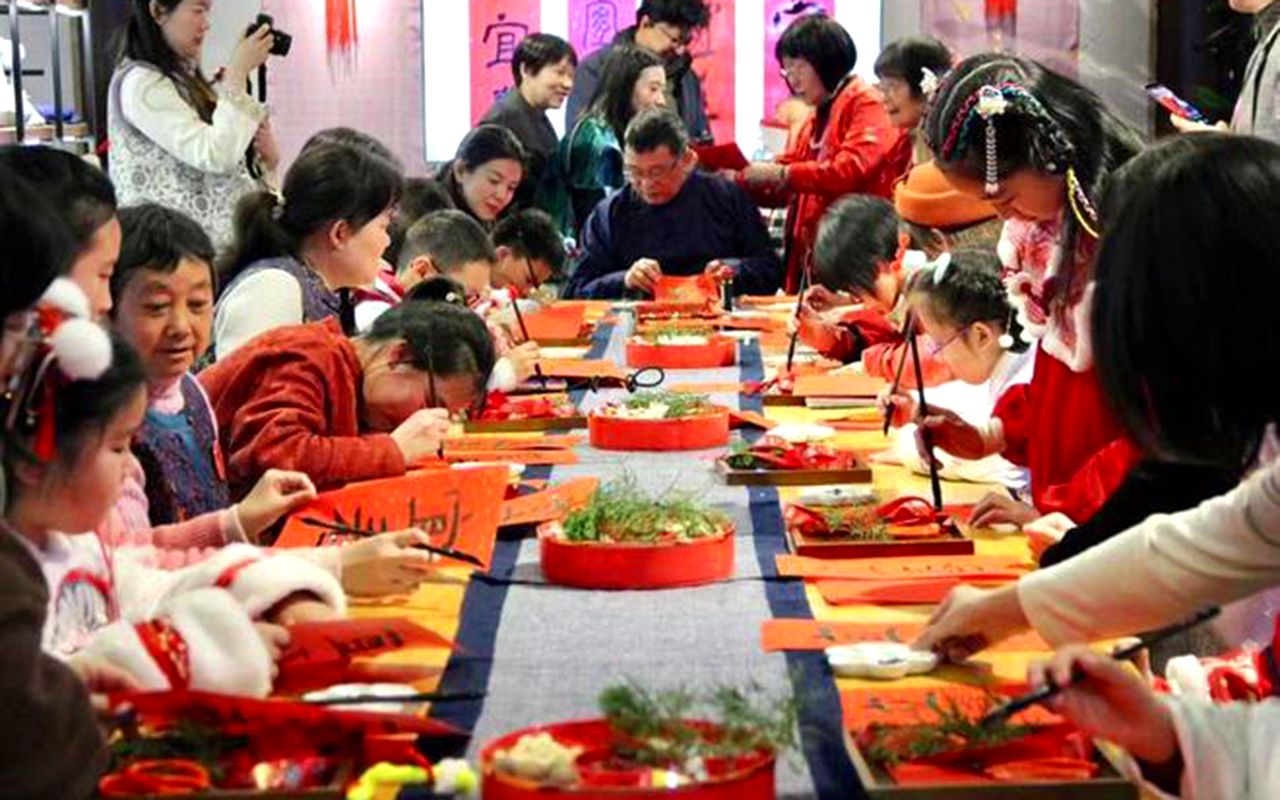 图为2月2日,上海徐汇,“海上最春早”乙巳立春游园会活动现场民众们写宜春贴。(上海东方网)