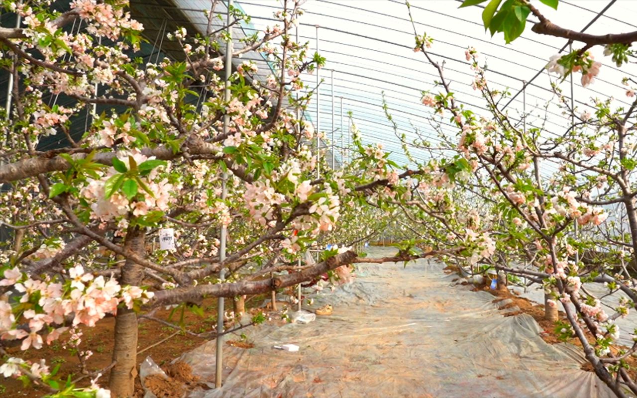 图为山东聊城近日樱桃花开满枝。(新华社)