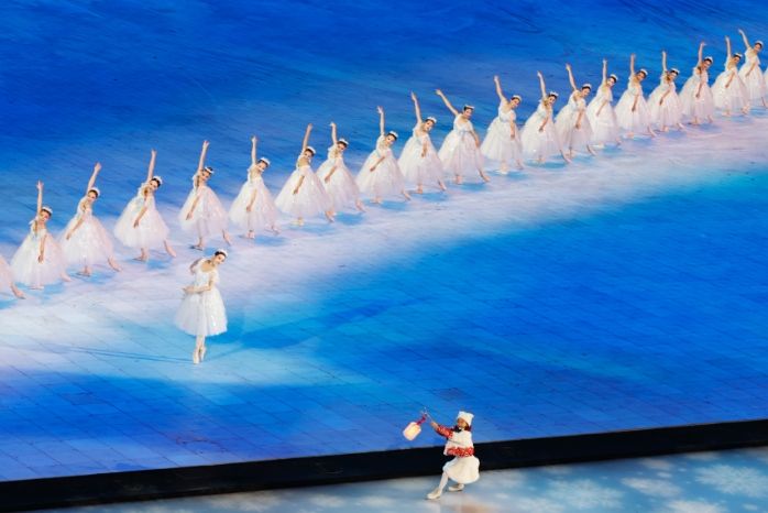 2月7日,第九届亚洲冬季运动会开幕式在哈尔滨举行。图为文艺演出。(图/中新社)