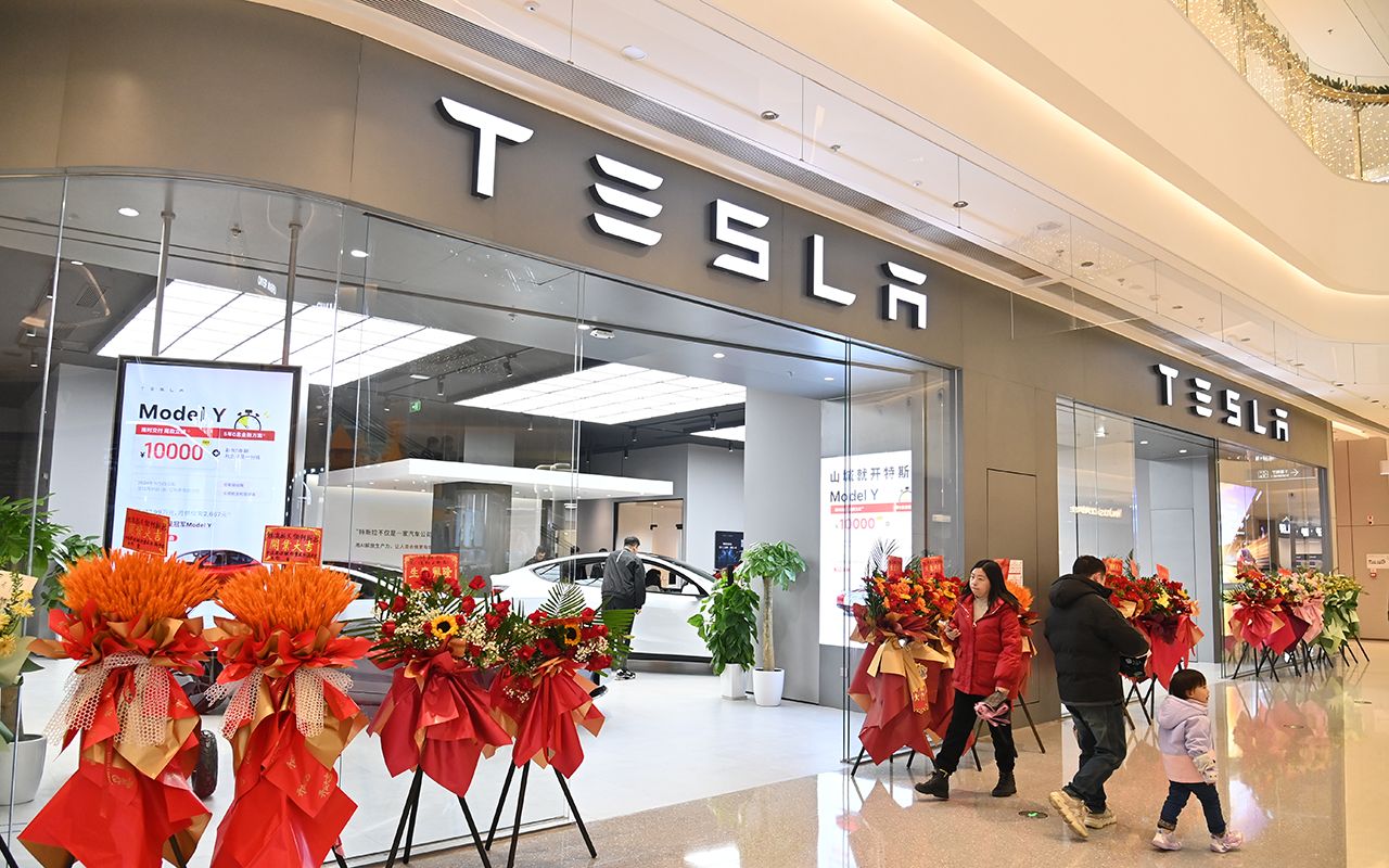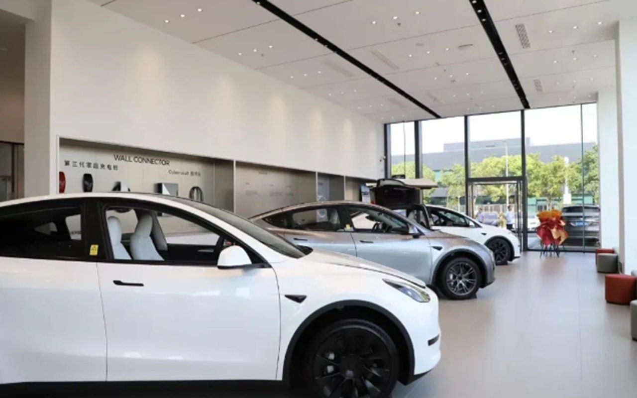 图为江苏扬州特斯拉京华城体验店展示新款Model Y电动汽车。(CFP)
