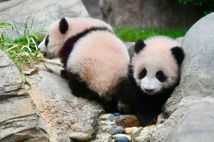 “港产”大熊猫龙凤胎“家姐”和“细佬”将于2月15日正式与公众见面。(图/中新社)