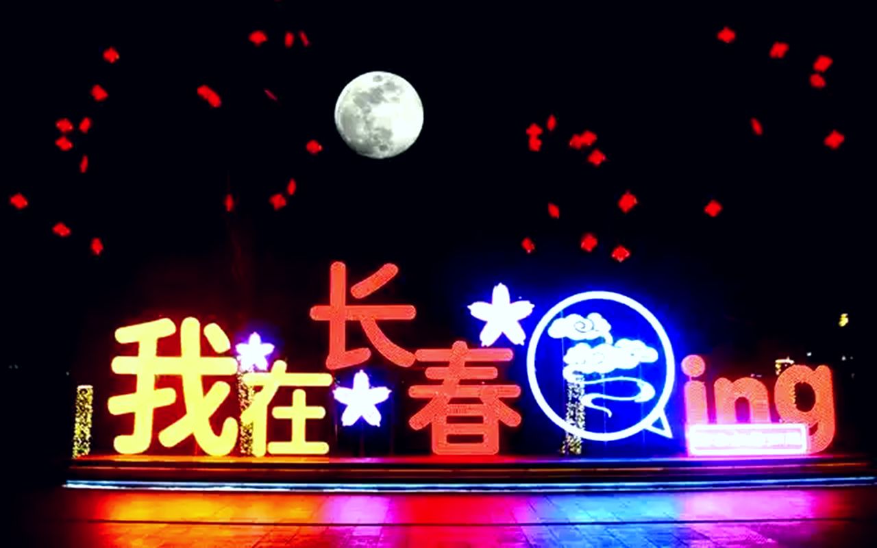 图为2月12日,吉林长春,长春世界雕塑园灯笼与明月交相呼应,美不胜收!(长春《吉林日报》)