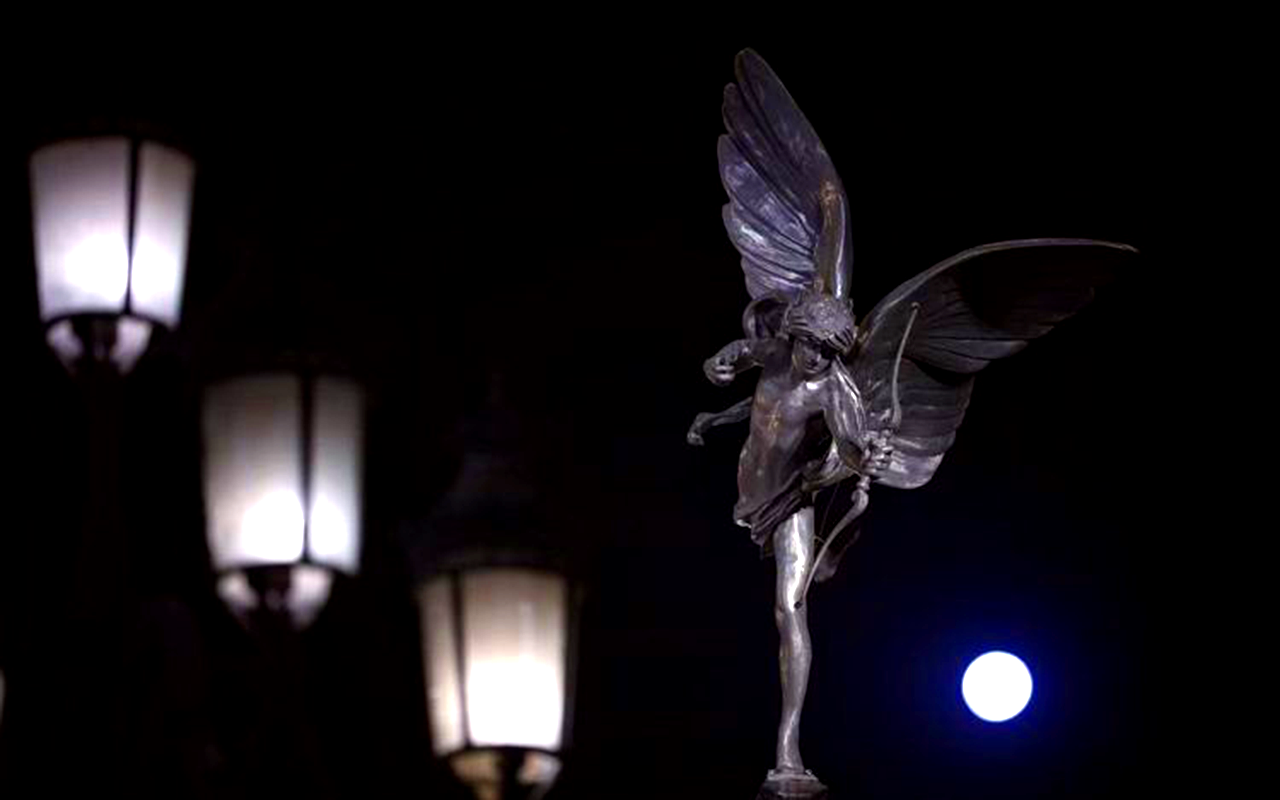 图为2月12日,北京蓝色港湾,“爱神的箭”射向月亮。(北京《新京报》)