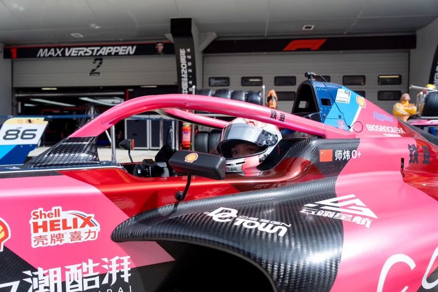 中国首位F1学院外卡车手铁豆(本名:师炜)驰骋赛场。(图/上海上观新闻)