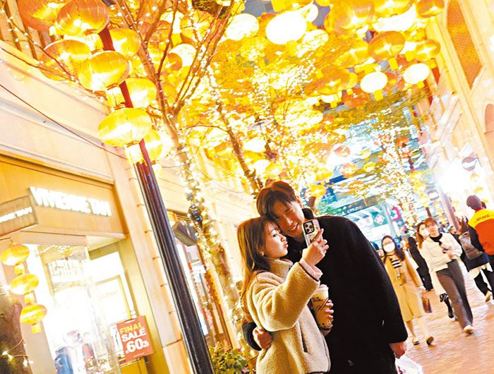 西方情人节来临,13日有不少情侣在香港利东街打卡。(图/香港《文汇报》)