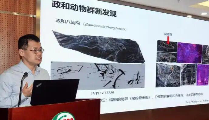 王敏研究员向媒体介绍政和八闽鸟化石发现及研究进展。(图/中新网)