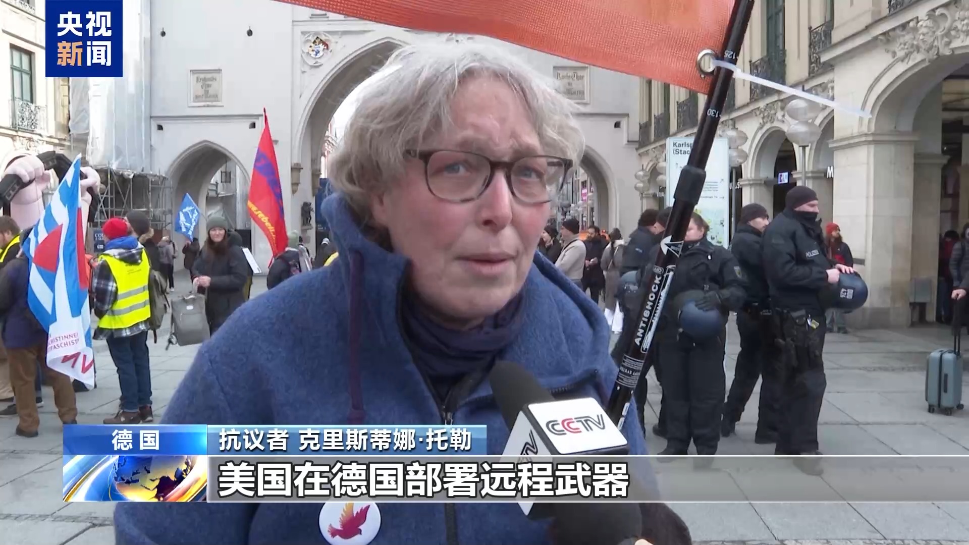 抗议者克里斯蒂娜·托勒:美国在德国部署远程武器,是自己躲在后面,拿德国来挡枪。政客们认为通过军备竞赛可以实现和平,但这最终只会把我们带向第三次世界大战或者核战争。过去三年里我们显然已经沦为美国的帮凶,这一策略对美国来说非常奏效。美国从中渔利,而欧洲成了“冤大头”。现在正是我们反思错误,并且必须改变方向的时刻。(总台记者阮佳闻)