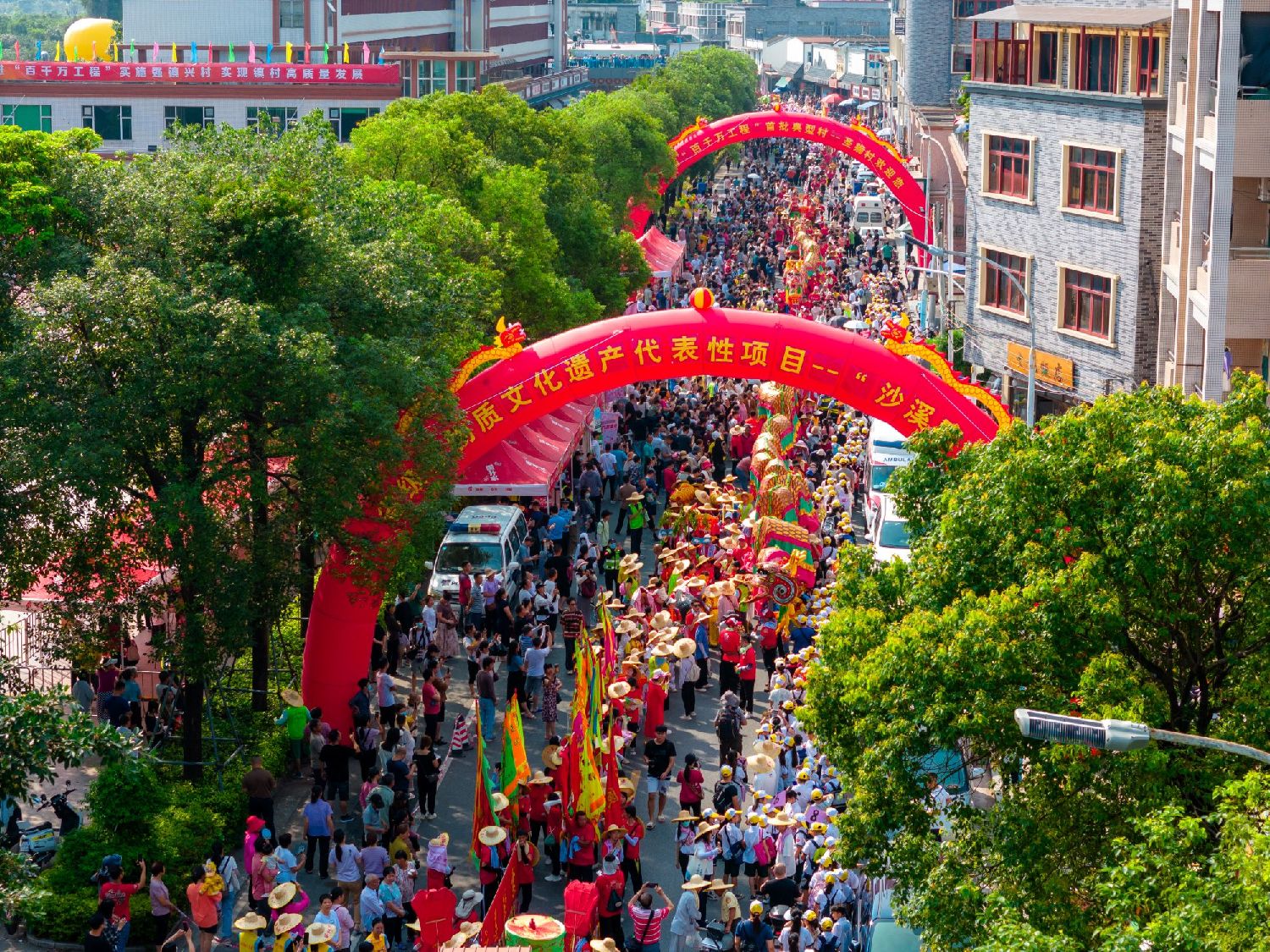 2024年5月,圣狮传统民俗巡游现场。(图/中新社)