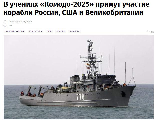 中新网2月17日电据俄罗斯《消息报》当地时间2月17日报道,俄罗斯、美国、法国、英国及其他多个国家将参与印度尼西亚组织的“科莫多-2025”军事演习。