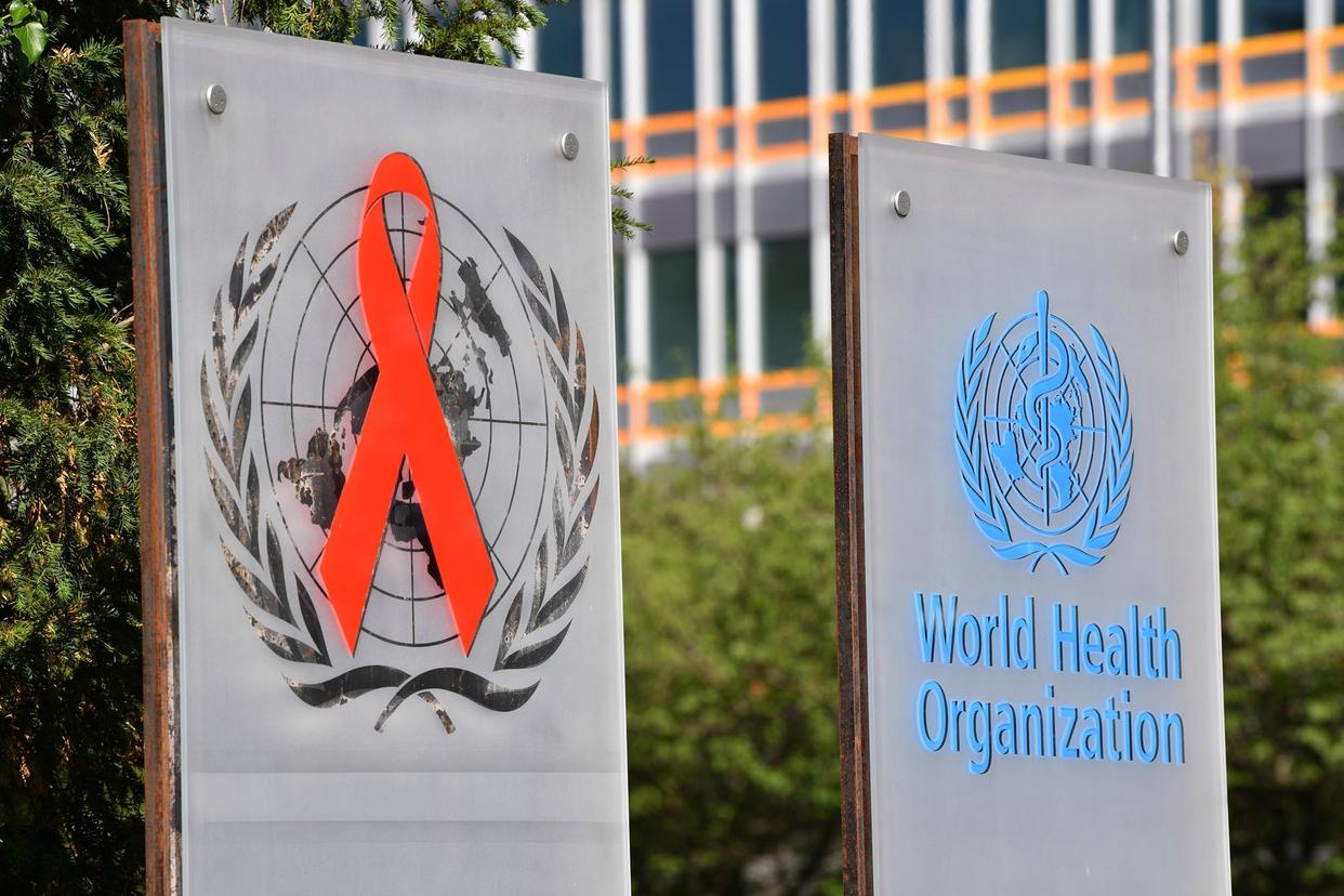 图为在瑞士日内瓦联合国艾滋病规划署总部拍摄的联合国艾滋病规划署(左)和世界卫生组织标识。(图/新华社)
