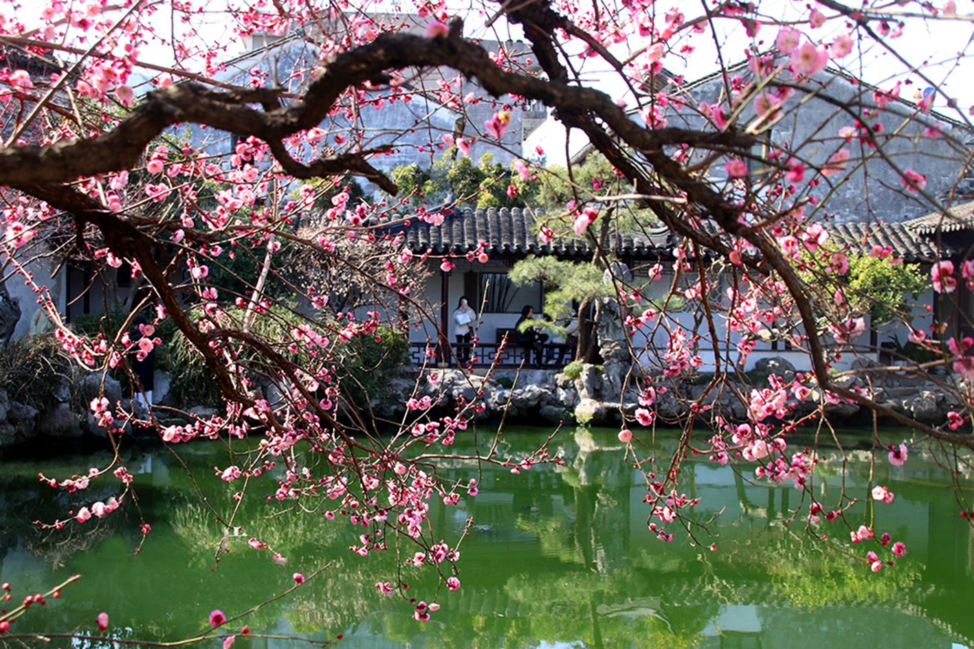 2月18日,江苏苏州古典园林艺圃内,梅花竞相绽放,春意渐浓。(人民网)