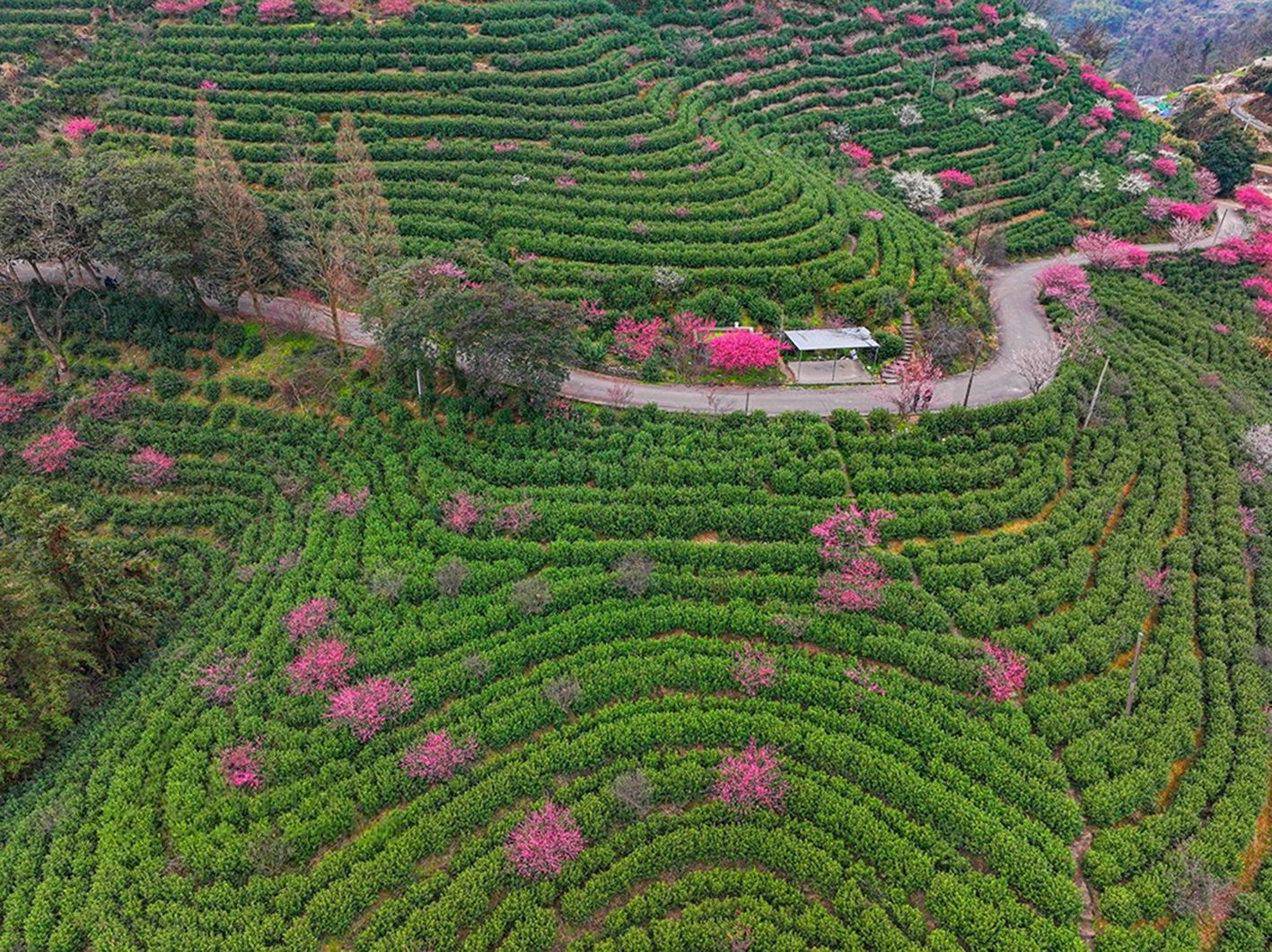 2月17日,浙江省温州市永嘉县北城街道戈田村茶园内梅花盛开,吸引游客前来游玩。(人民网)