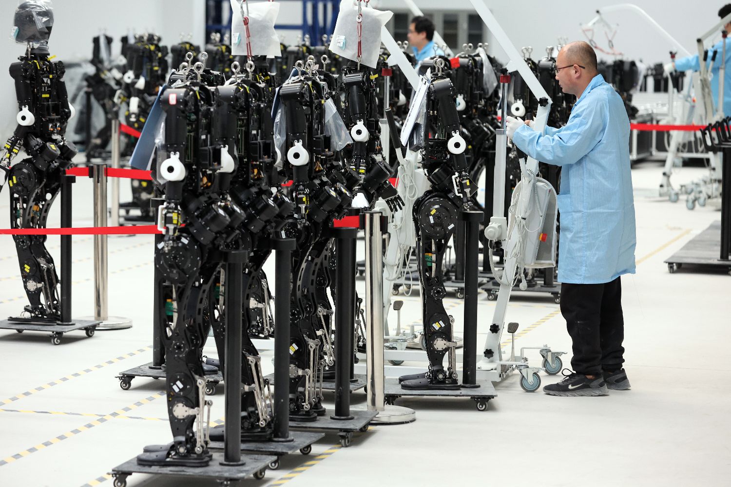 2月18日,工程师在调试人形机器人。日前,上海首座人形机器人量产工厂——智元新创技术有限公司一期工厂实现大规模量产。(图/中新社)