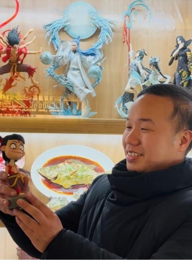 甄铭杰展示彩塑“小哪吒”。(图/北京《中国青年报》)