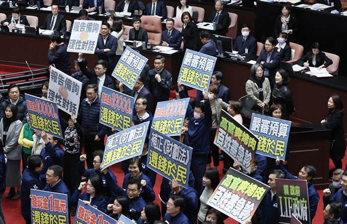 台“立法院”25日邀请“行政院长”卓荣泰报告,中国国民党立委全体涌向发言台旁举牌抗议,批评民进党不知人间疾苦。经过“立法院长”韩国瑜的协调,国民党立委离开主席台,卓荣泰成功上台报告。