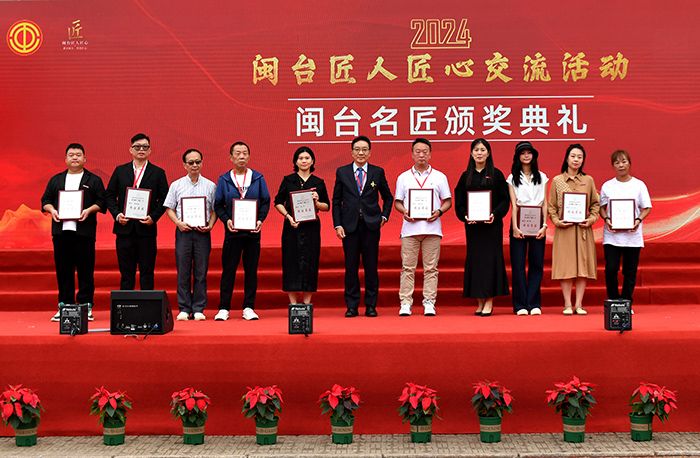 2024年10月20日,“匠心携手闽台一心”2024闽台匠人匠心交流活动在福建福州启幕。图为闽台名匠颁奖仪式。(图/ 中新社)