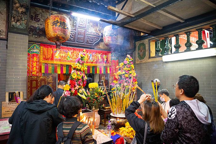 初到澳门的人如果稍加留意,就会发现大小商铺门前一角多数安放有一个小小的神龛。其内不仅奉有香烛,还恭敬摆放着各式祭品,从鲜花果品到饼干、可乐、红酒等不一而足。