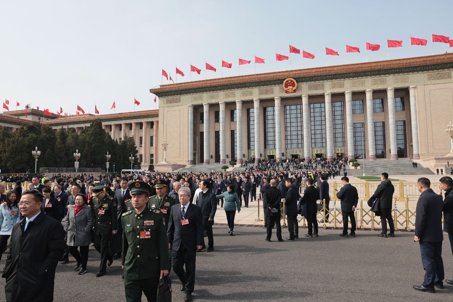 北京时间3月4日上午,十四届全国人大三次会议在北京人民大会堂举行预备会议,通过了大会议程。 图为会议结束后,代表们步出会场。(图/香港中通社)