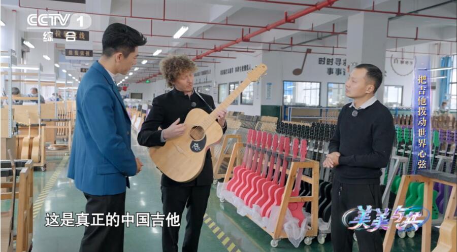 这把吉他的琴体、琴颈、琴头,全是由竹子制作的。(图/中国央视新闻视频截图)