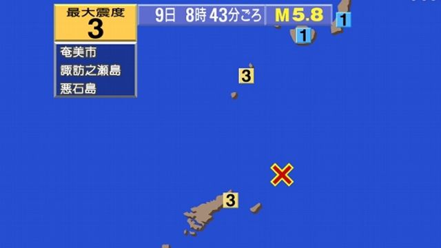 根据日本气象厅的观测,震中位于奄美大岛东北海岸附近,估计震源深度为50千米,震级为5.8级。