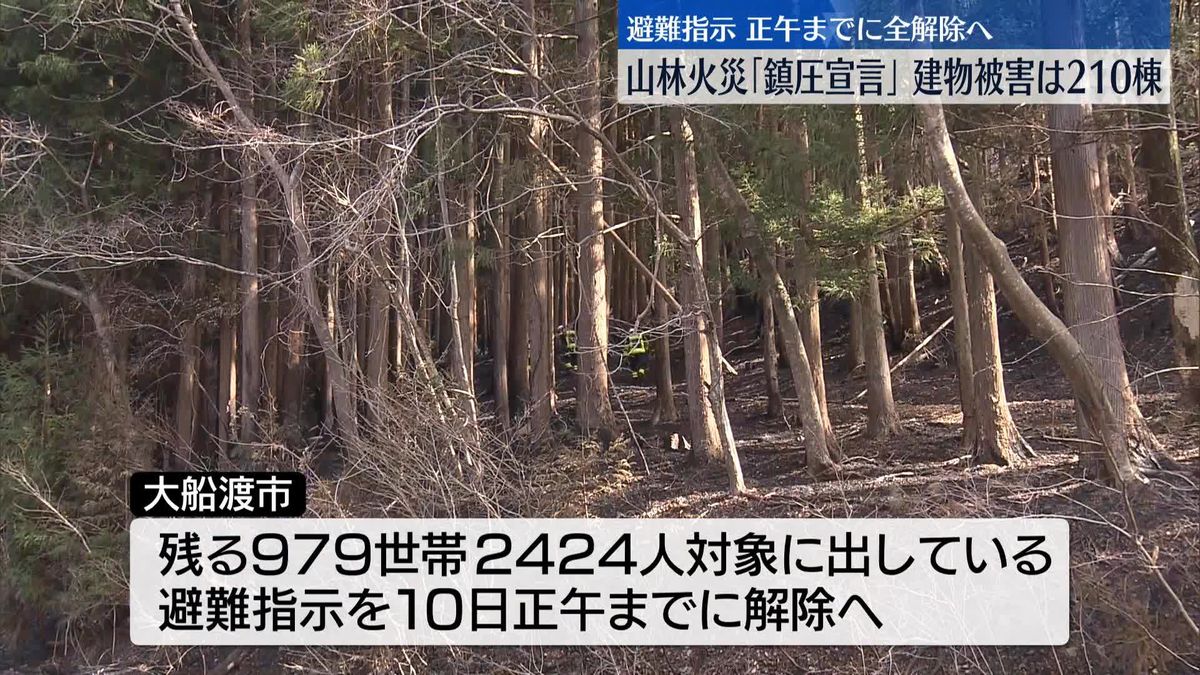 日本岩手县大船渡市山林火灾扑灭, 预计今日全面解除避难指示