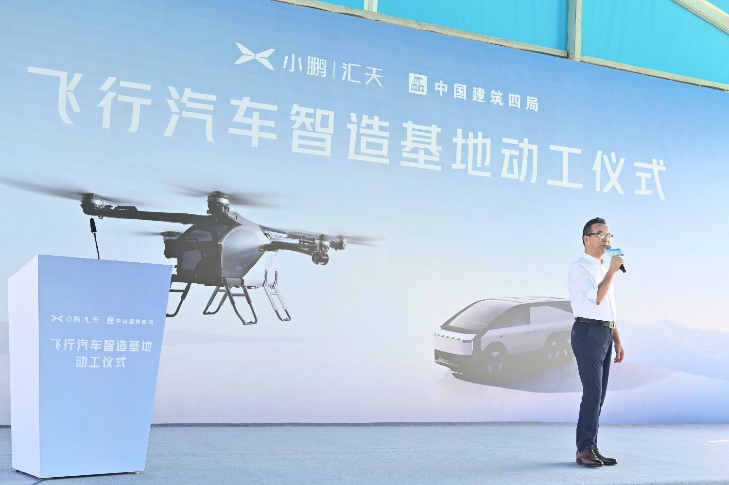 资料图为2024年10月27日,广东广州,小鹏汇天飞行汽车智造基地正式动工。该基地坐落于广州开发区,将用于生产分体式飞行汽车“陆地航母”的飞行体部分。首期占地面积约18万平方米,规划布局复材、连接、涂装、总装四大生产车间及附属设施。(图/中新社)