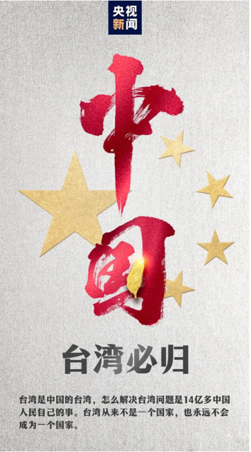 大陆央视新闻制作的“台湾必归”话题相关海报被广泛传播。(图/大陆央视新闻)